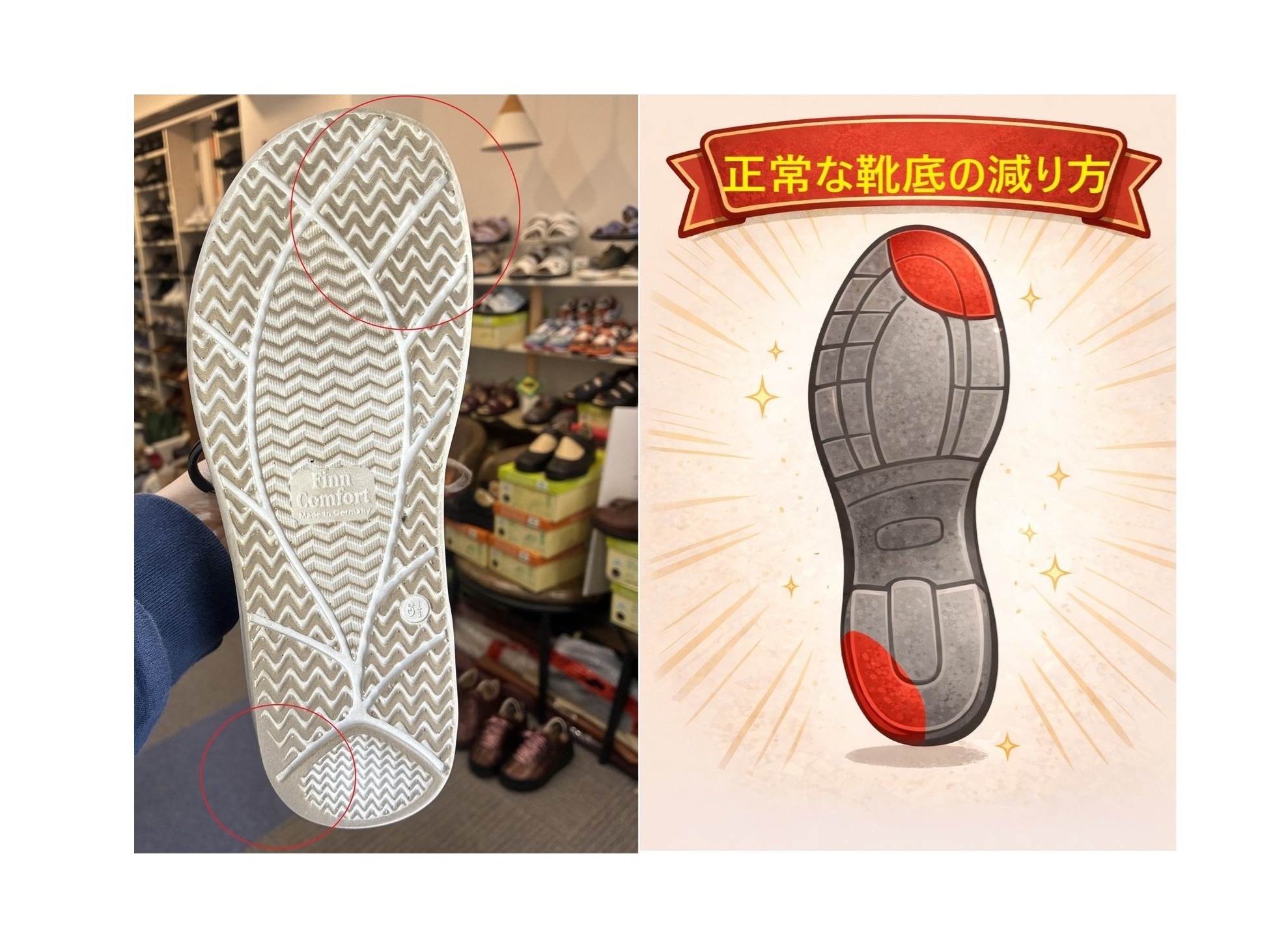 当社では、心に寄り添った接客を特に大切にしております。最適な1足をご提 案できるよう、知識・技術と心を磨き、一生懸命にお力になりたいと考えて おります。